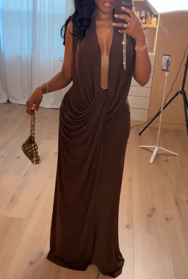 Chocolate Extreme-Plunge Neck Maxi Dress