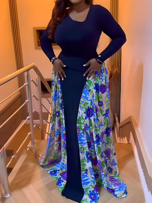 Floral Print Patchwork Long Sleeve Dress