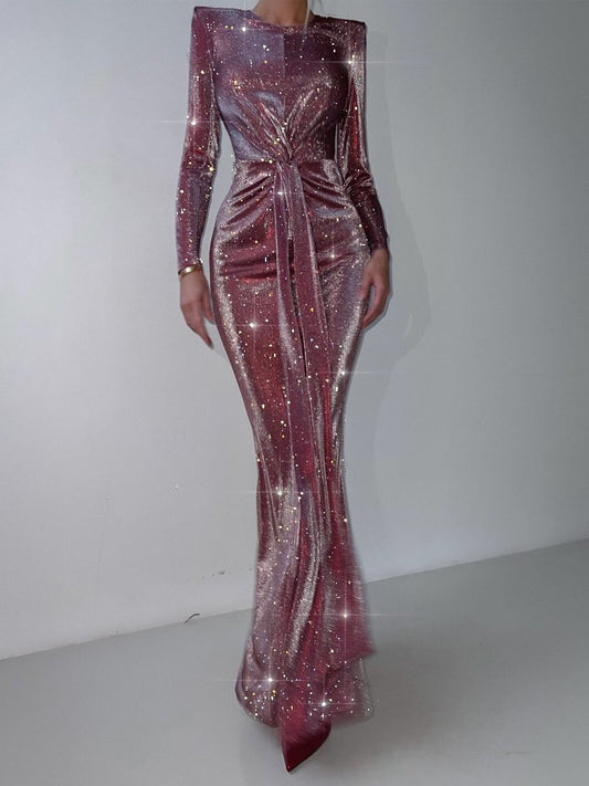 Fashion Shinny Knotted Maxi Dress