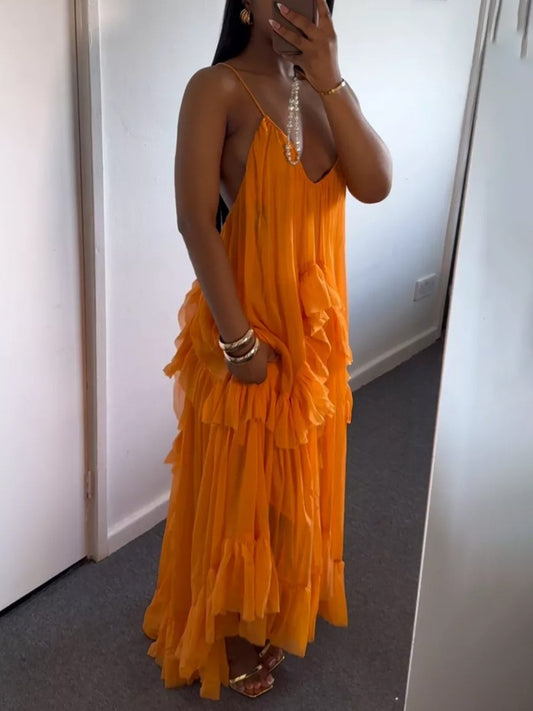 Ruffled Loose Sling Maxi Dress