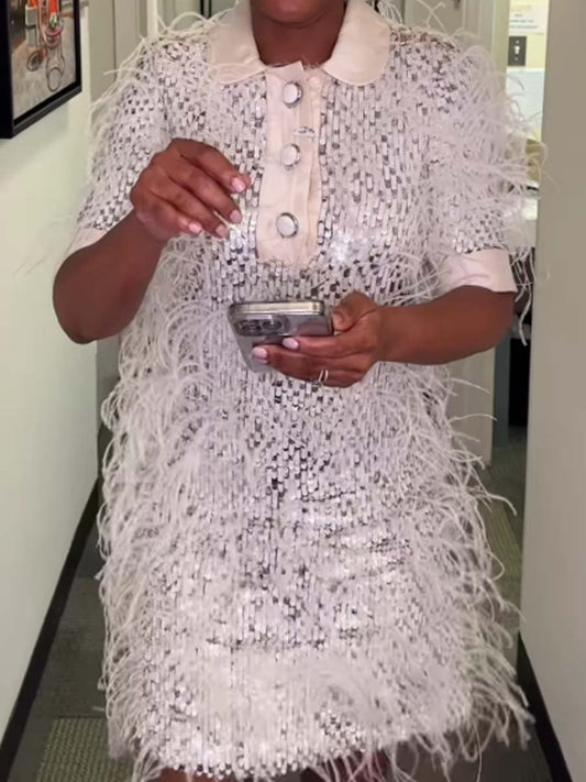 Shinny Feather Decoration Knitted Dress