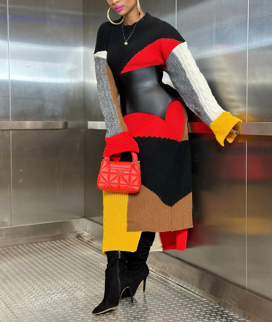 Deep V Neck Ruffled Knit 2-Piece Skirt Set