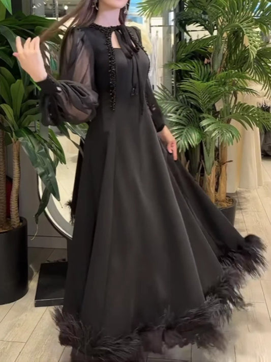 Rhinestone Sparkle Velvet Feathers Patchwork Dress