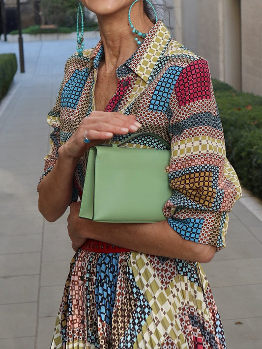 Puff Sleeve Pleated Deep V-neck Printed Dress
