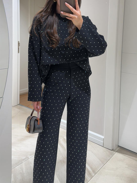 Hot Drilling Long Sleeve Two Pieces Set