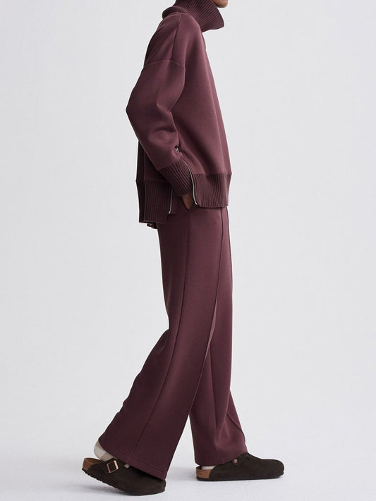 High Neck Zip Up Sweater Two Pieces Set