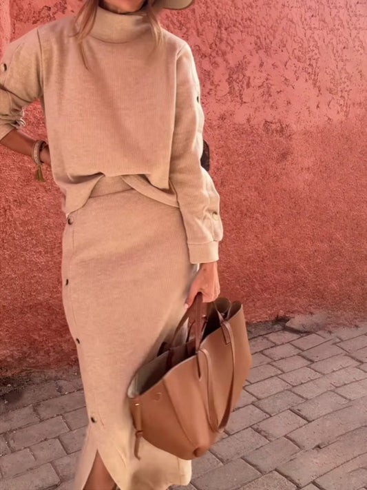 High Neck Knitted Hip Skirt 2pc Set
