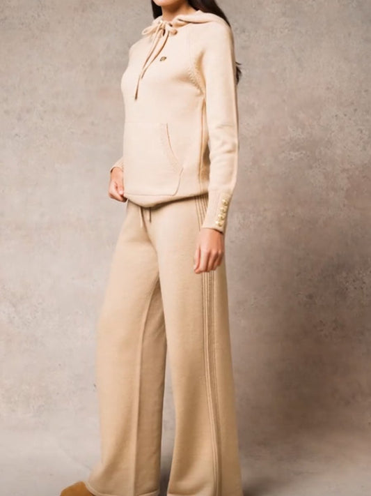 Hoodied Collar Knitted Drawstring Waist Two Pieces Set