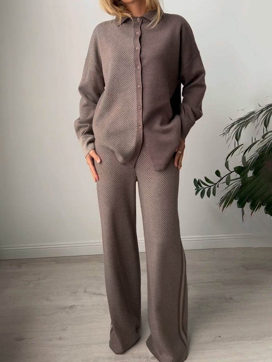 Knitted 2pc Set With Oblique Button