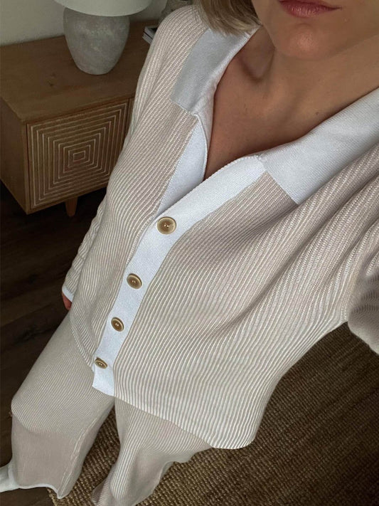 Knitted V-Neck Pants Set