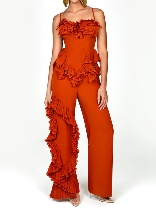 Spaghetti Straps Elaborate Pleated Ruffles Two Pieces Set