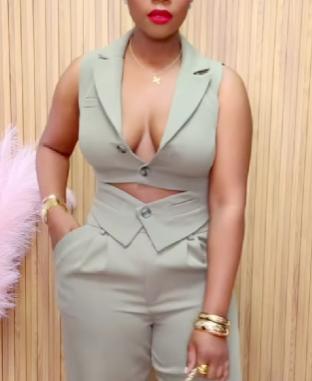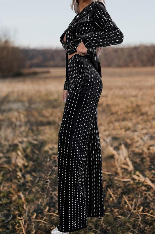 Rhinestone Sparkle Drawstring Waist Two Pieces Set