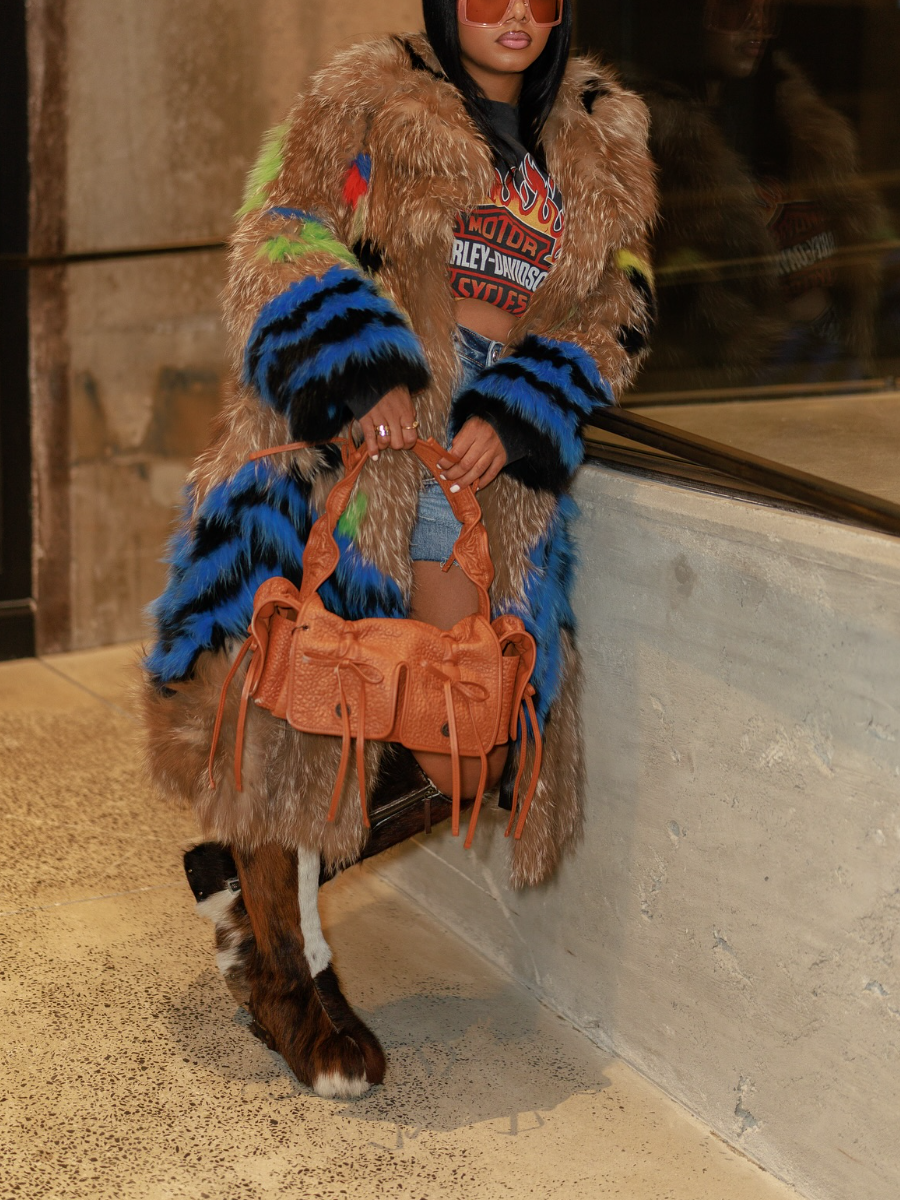 Contrast Faux Fur Coat